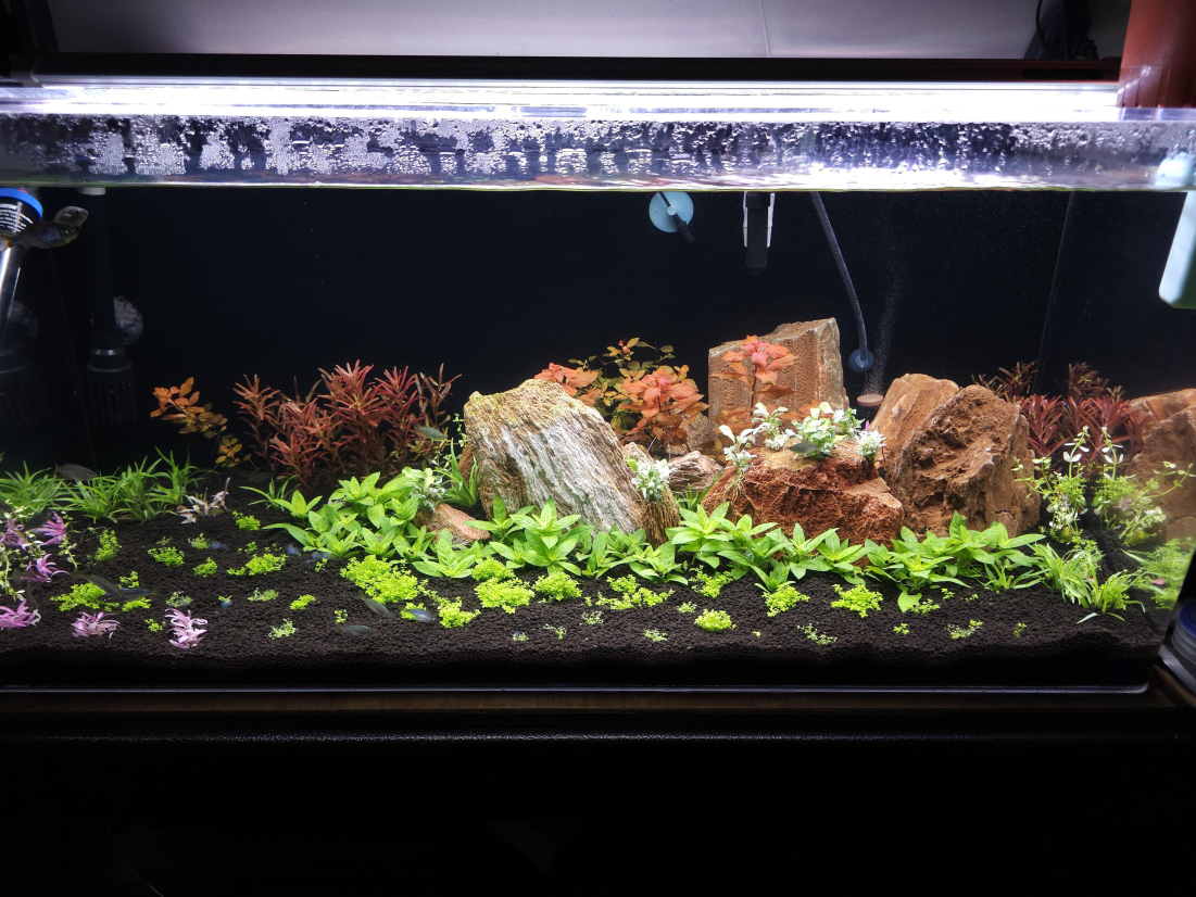 This tank is only 15 days young :) I am having lots of success plant wise with this tank, I think part of the reason im doing so much better than myself years ago is higher light, shorter duration. Ive been running my lights at near full brightness with a short 6hr duration. Still dosing Thrive+ and Easy Iron slowly overtime just a pump every 4-5 days.